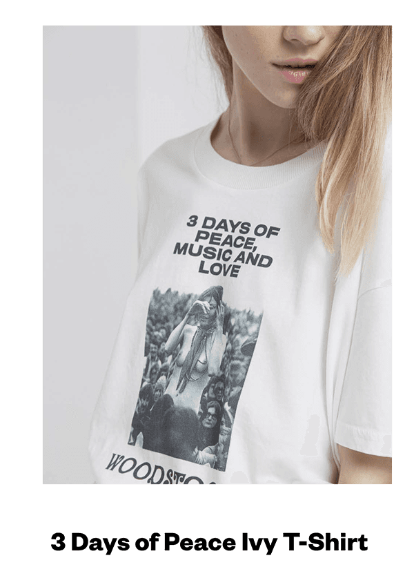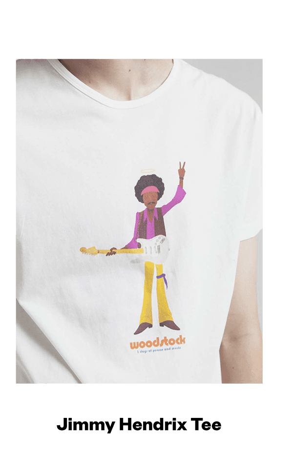 Pour l’anniversaire de Woodstock, Thinking Mu a édité une série limitée de tee-shirts en coton 100% biologique pour que vous puissiez porter l'esprit d'amour et de liberté de Woodstock !