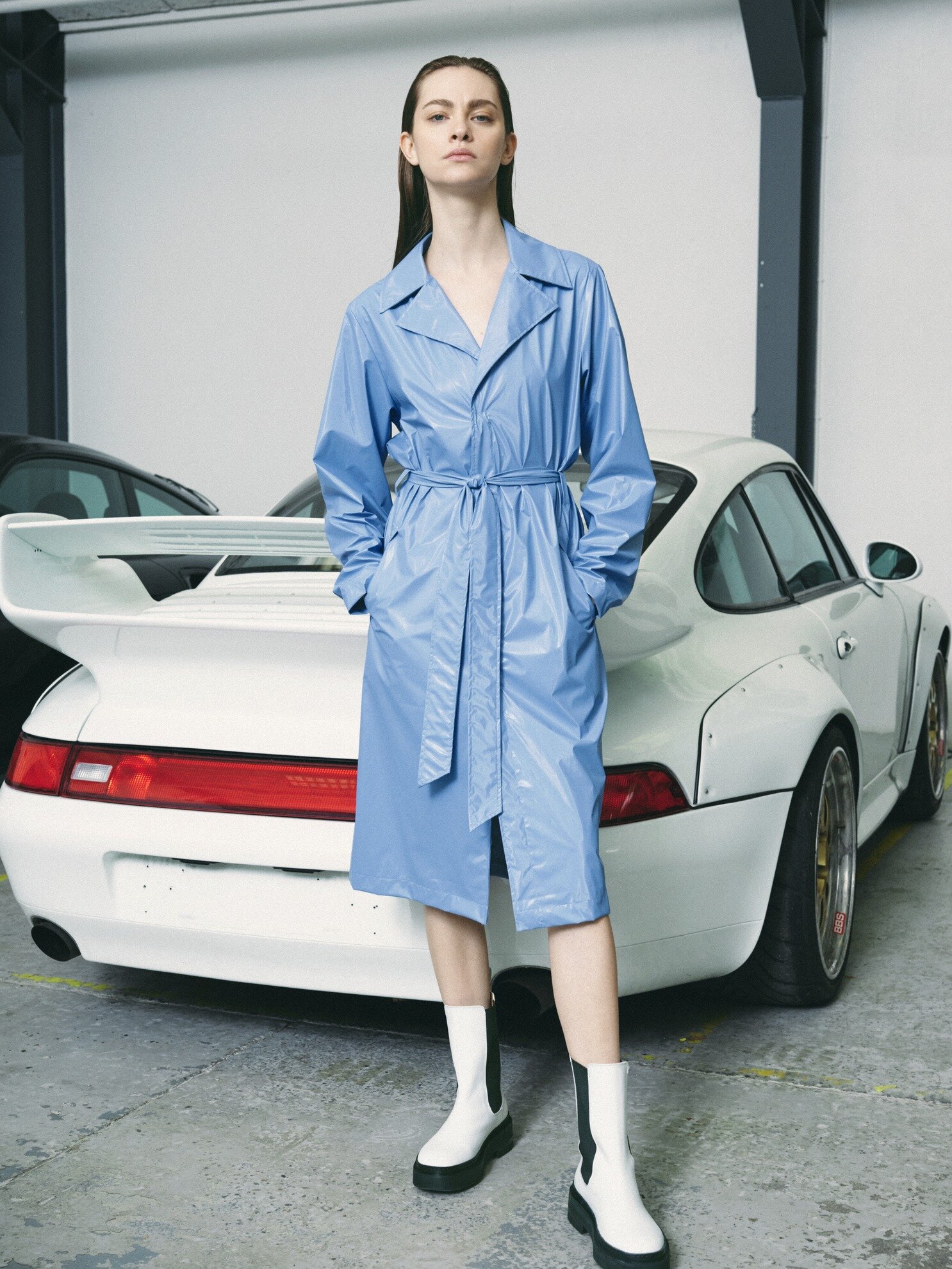 Favorisant le mouvement, la matière Ultralight est extrêmement légère, respirante et imperméable. Entre prêt-à-porter et trenchs, la collection est entièrement construite en PU waterproof et comporte des coutures doublement soudées ainsi que des finitions parfaites pour les temps humides.