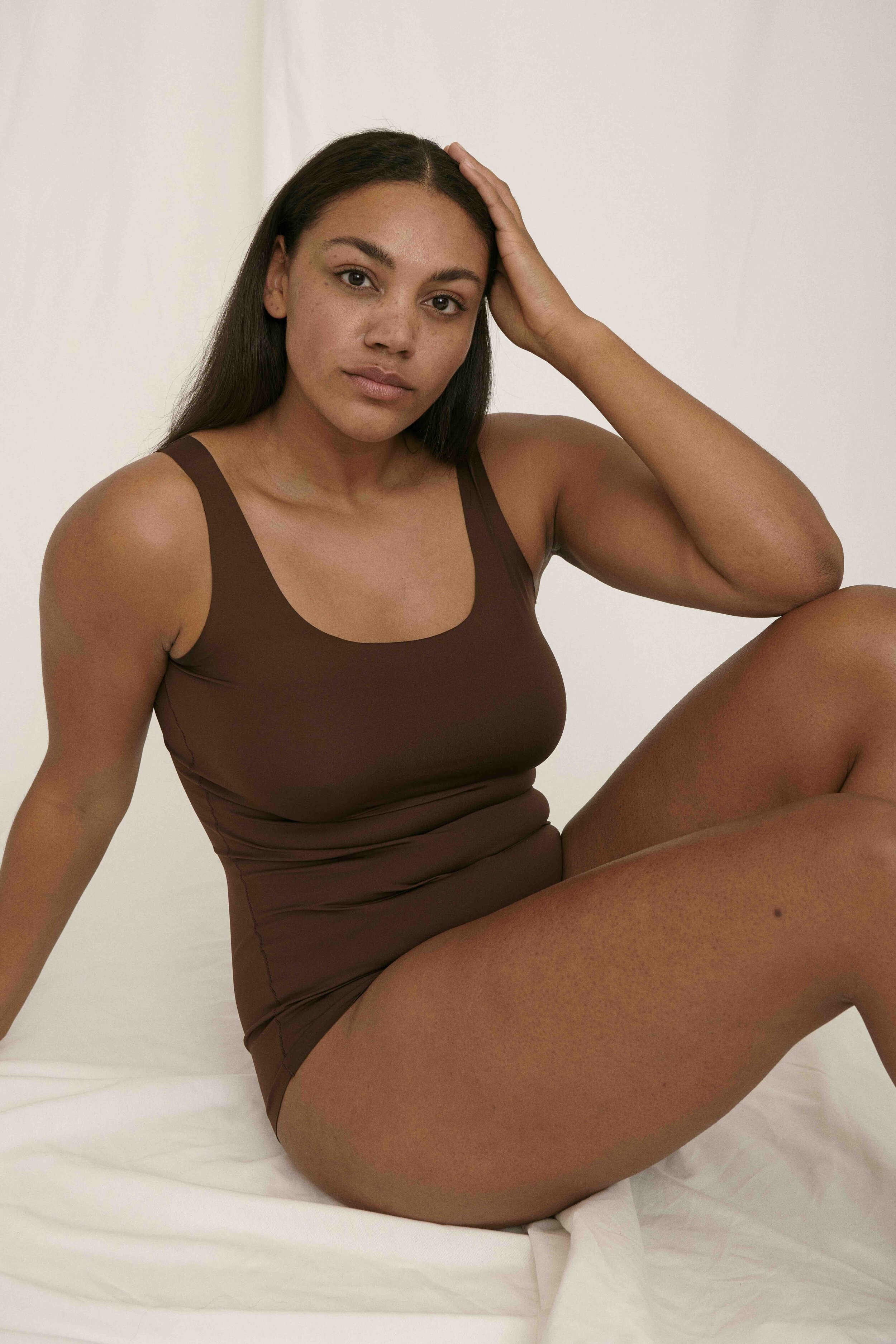 Elle est réalisée en matière sourcée en Italie et composée de 82% de nylon recyclé et 18% d’élasthane. Les pièces sont ensuite fabriquées en Turquie.