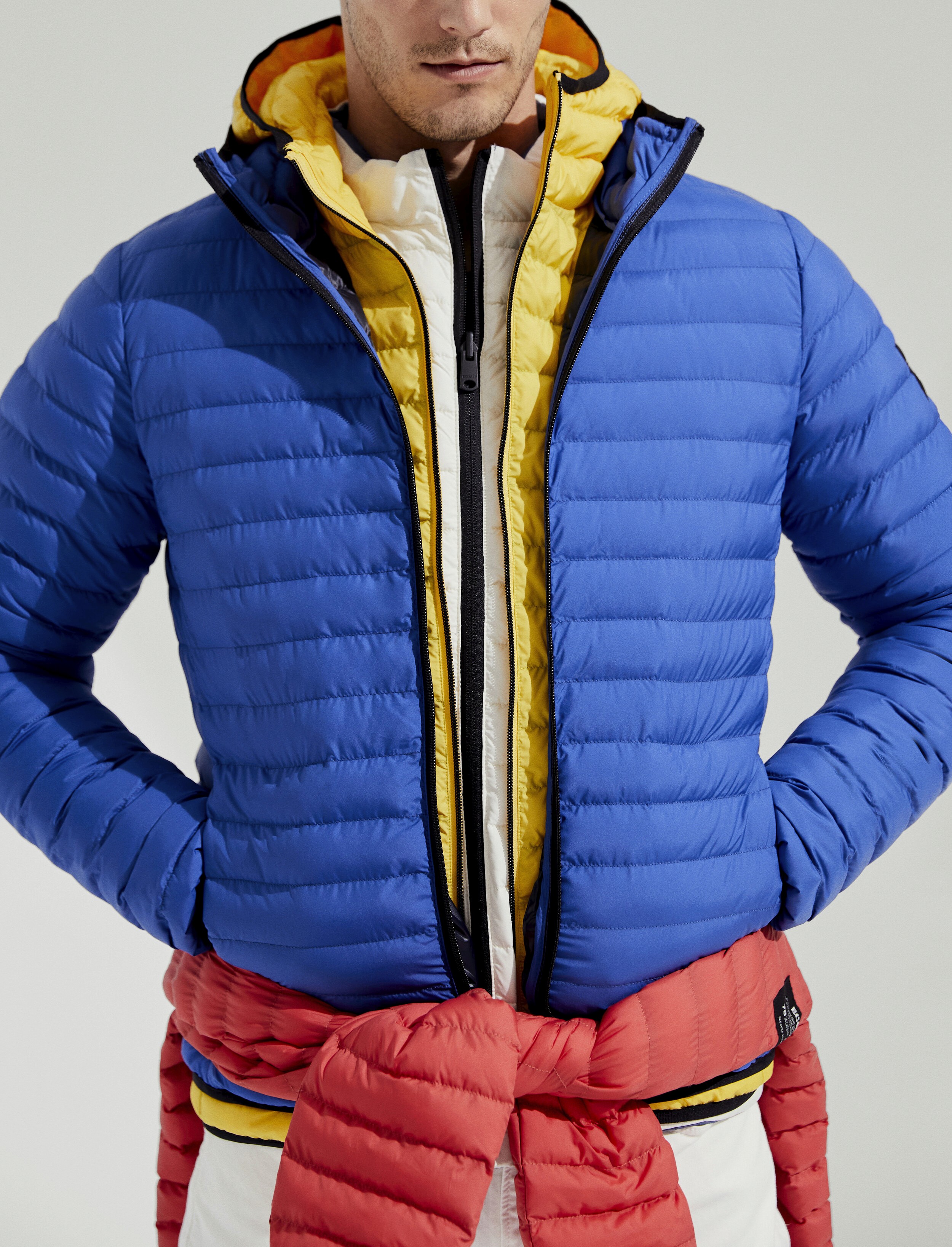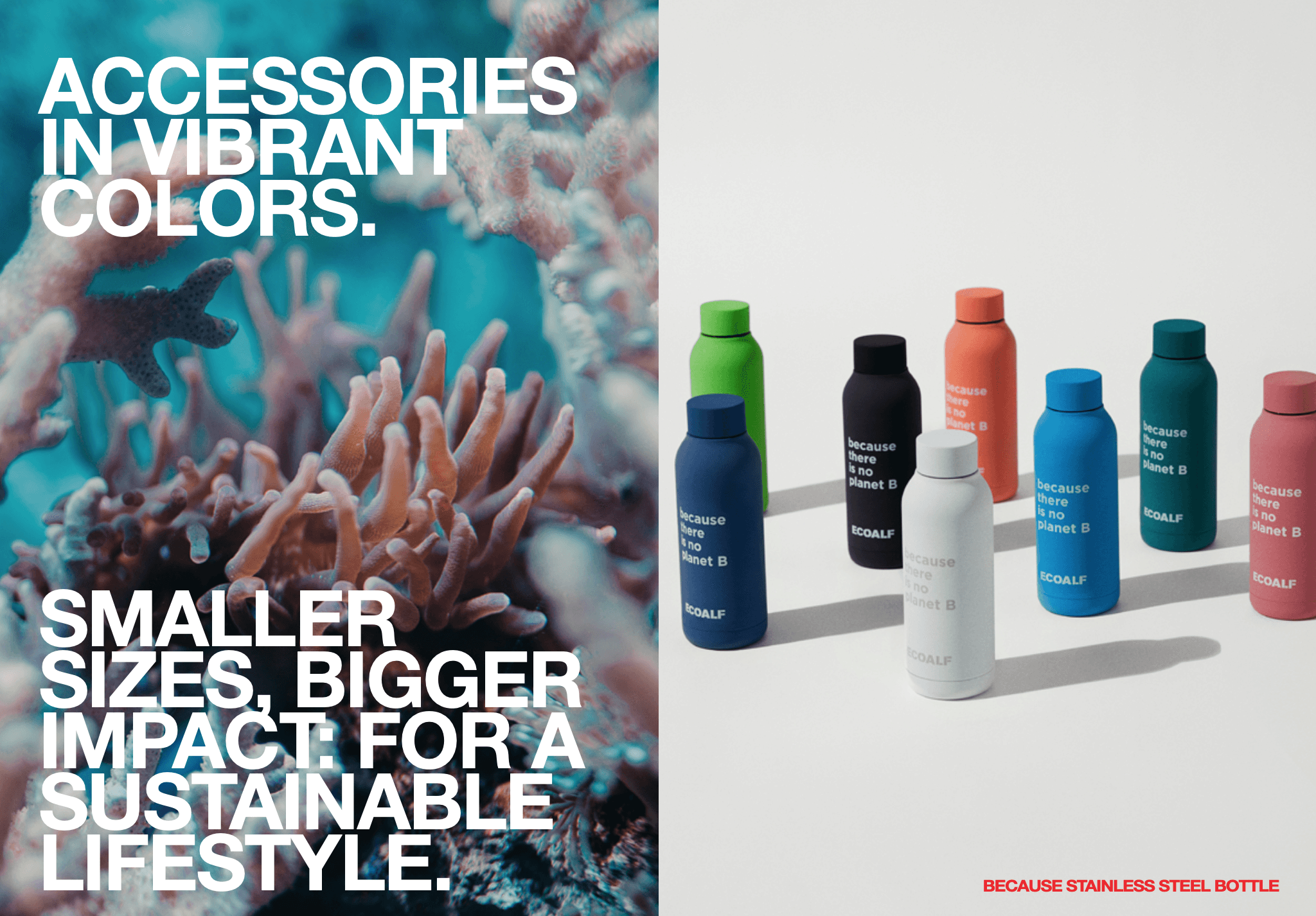 Le jaune, le bleu et le corail reflètent la diversité de couleurs et la bonne santé des fonds marins que Ecoalf veut protéger de l'extinction. Ces couleurs intenses deviennent de plus en plus transparentes et blanches. Tout comme la vie marine qui disparaît.
