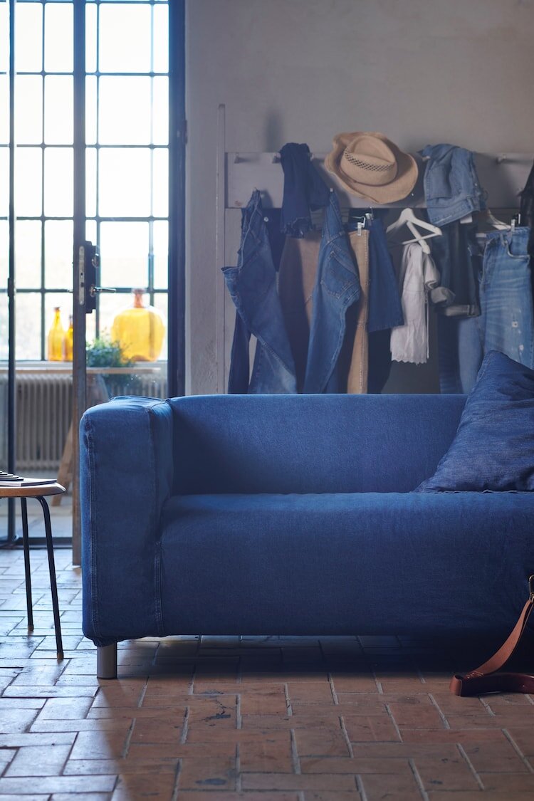 Convaincus que les produits et les matériaux peuvent durer beaucoup plus longtemps, MUD Jeans et IKEA collaborent pour donner une nouvelle vie au denim recyclé en l'utilisant pour développer les housses de canapé KLIPPAN. La nouvelle housse de canapé KLIPPAN est une collection limitée vendue à partir du printemps 2021 sur 9 marchés européens.