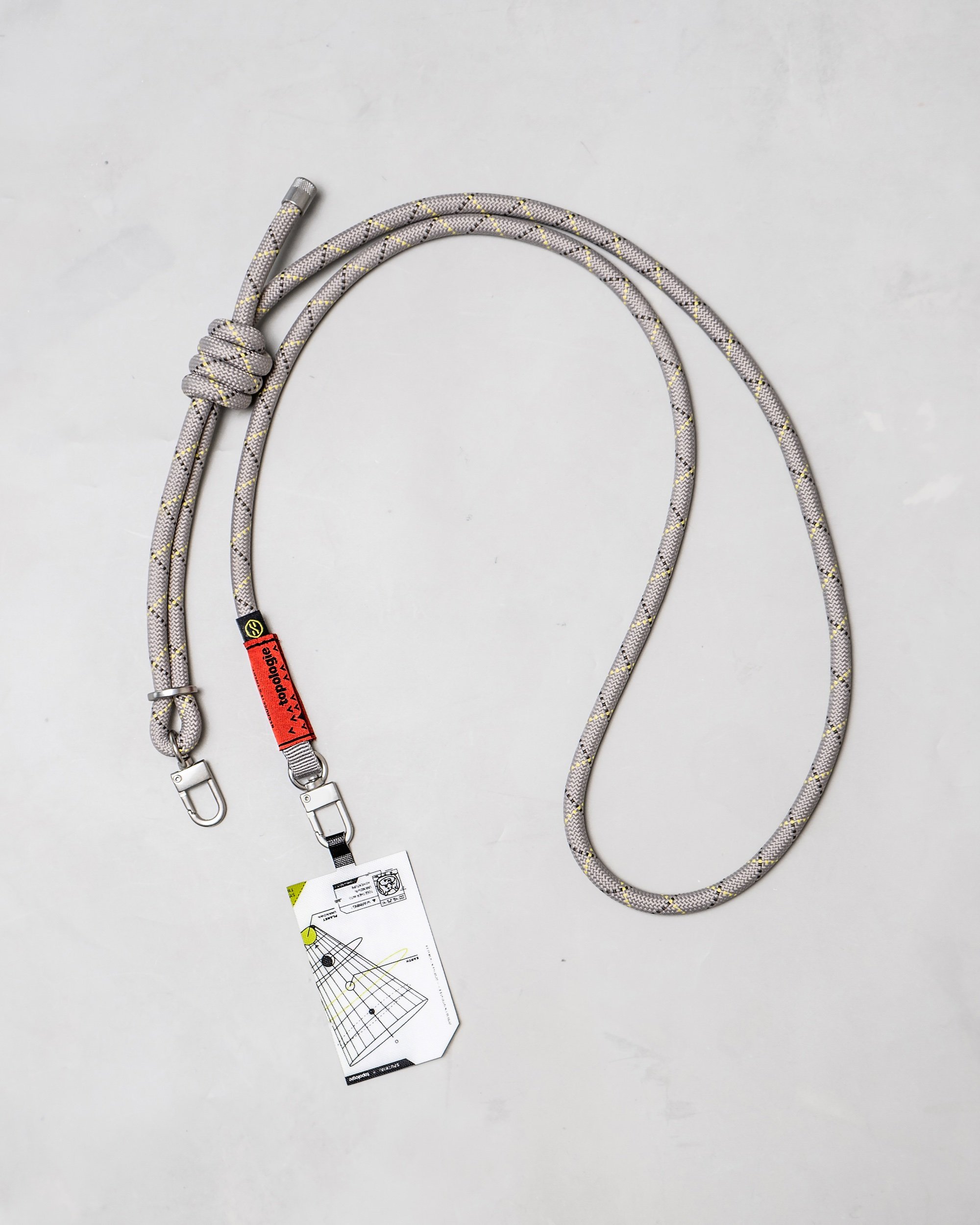La laisse, à la fois utilisable en bandoulière ou tenue à la main, est designée sur la base des cordons signatures 10 mm de Topologie. Assorti à cette laisse, la collection capsule comprend un cordon de 8.0 mm et un « phone strap adapter » qui vous permettront de porter votre téléphone en bandoulière.