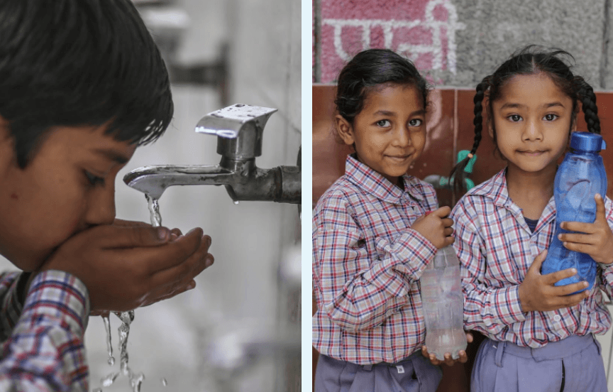 Aujourd’hui, en Inde, environ 1 personne sur 10 n’a pas accès à l’eau potable. C’est pour cela que WaterAid a décidé d’apporter son soutien à ce pays et tout particulièrement à une école située dans un quartier pauvre de la capitale de Delhi. Ainsi, celle-ci a pu obtenir un accès durable à l’eau potable grâce à l’installation de nouvelles conduites d’eau, et la mise en place de toilettes neuves et hygiéniques.