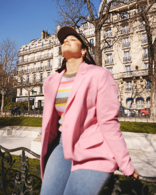 R : Le blazer 'Tara' ! Il est si polyvalent et se décline dans de nouvelles couleurs chaque saison. J'adore la dernière version en rose avec une légère structure et des épaulettes supplémentaires. Il peut être porté de tellement de façons différentes.
