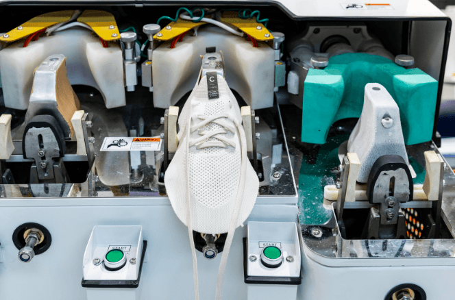 Les technologies innovantes de l'usine, telles que les machines à tricoter automatisées et le processus d'assemblage exclusif, réduisent considérablement les dangers de fabrication et les déchets généralement associés aux usines de chaussures traditionnelles.
