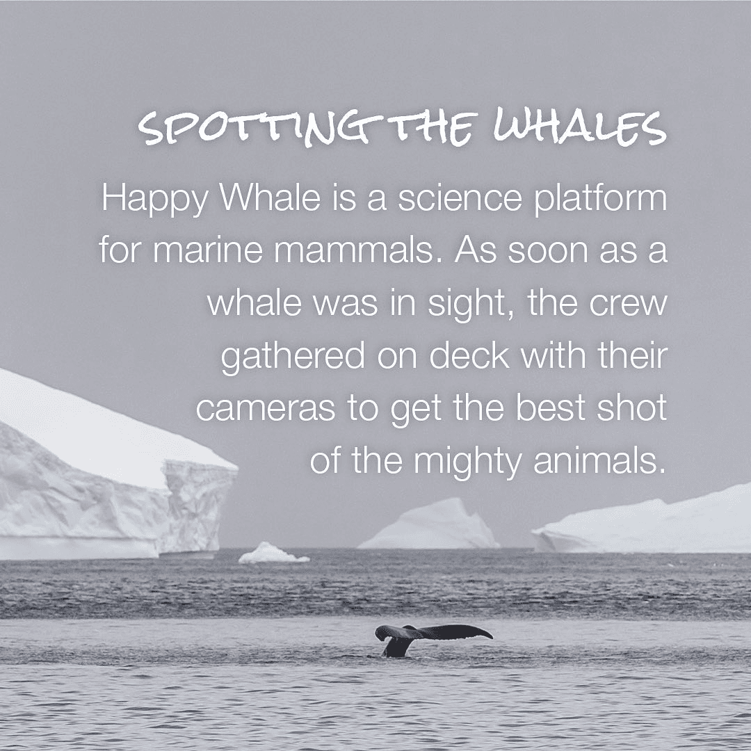 Alors que l'EUROPA poursuivait sa route vers le sud en direction de la péninsule antarctique, les baleines à bosse ont été aperçues de temps à autre par les vigies - une bonne occasion de les photographier pour Happy Whale, une plateforme recueillant des photos de mammifères marins prises par des scientifiques citoyens du monde entier à des fins d'identification photographique, afin de fournir des informations précieuses sur les schémas de migration des baleines et l'état de leur population.