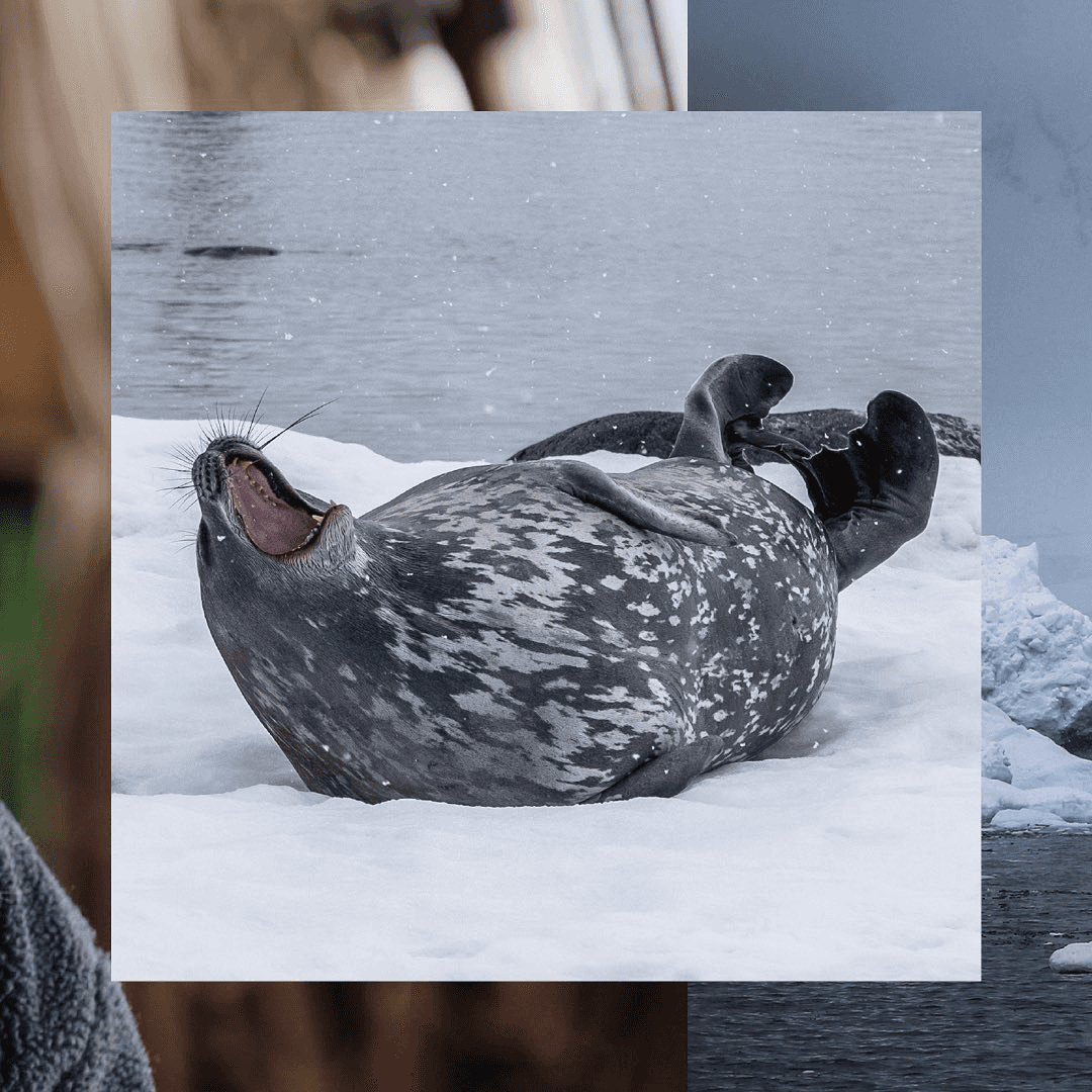 « Outre les baleines, Happy Whale s'intéresse également aux phoques de Weddell, et nous en avons surpris quelques-uns en train de faire une sieste sur le rivage. Les documenter nous aidera à mieux comprendre les mouvements de la faune de la péninsule Antarctique »
