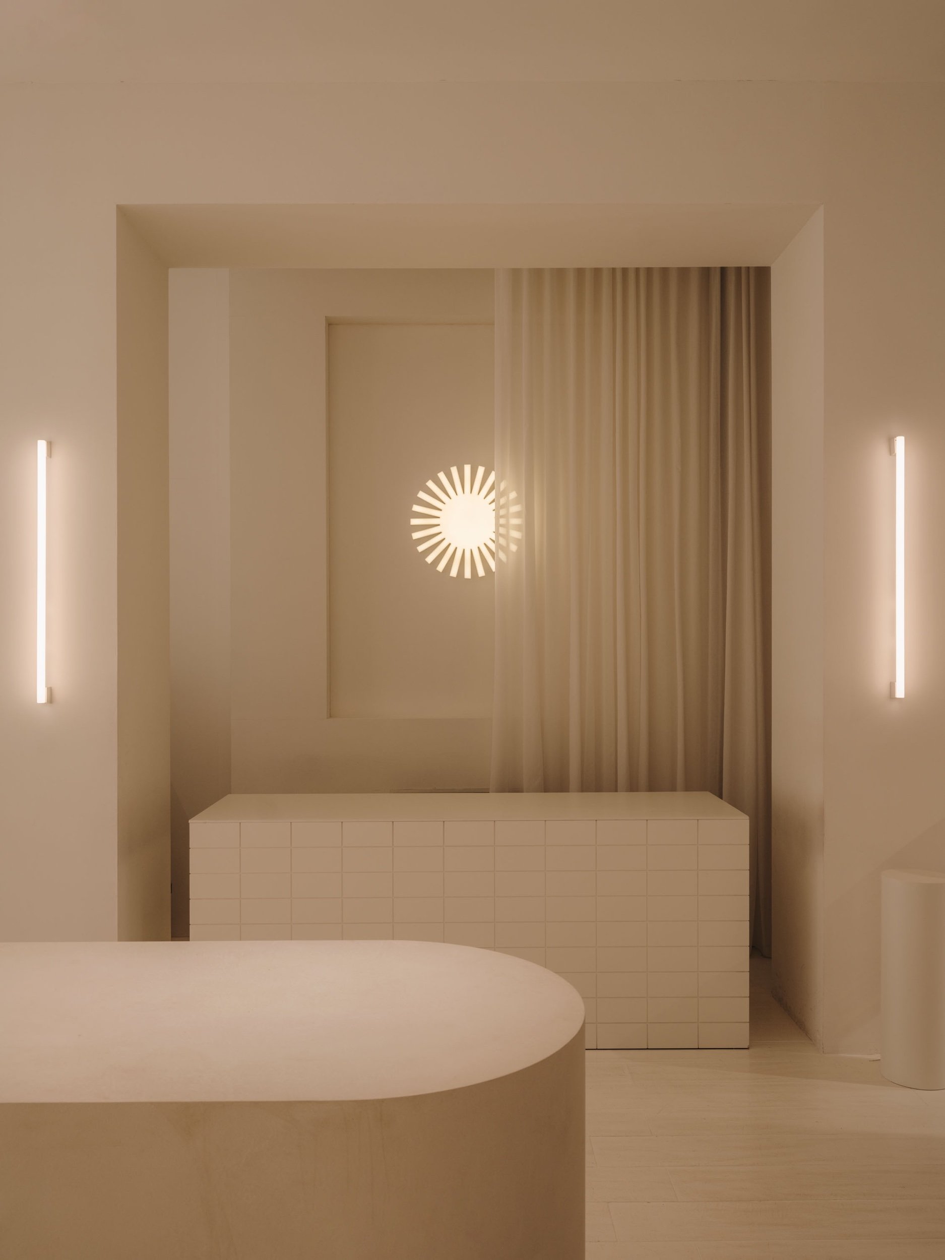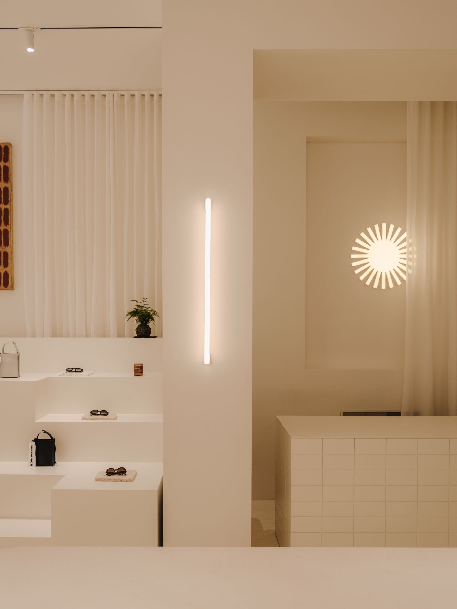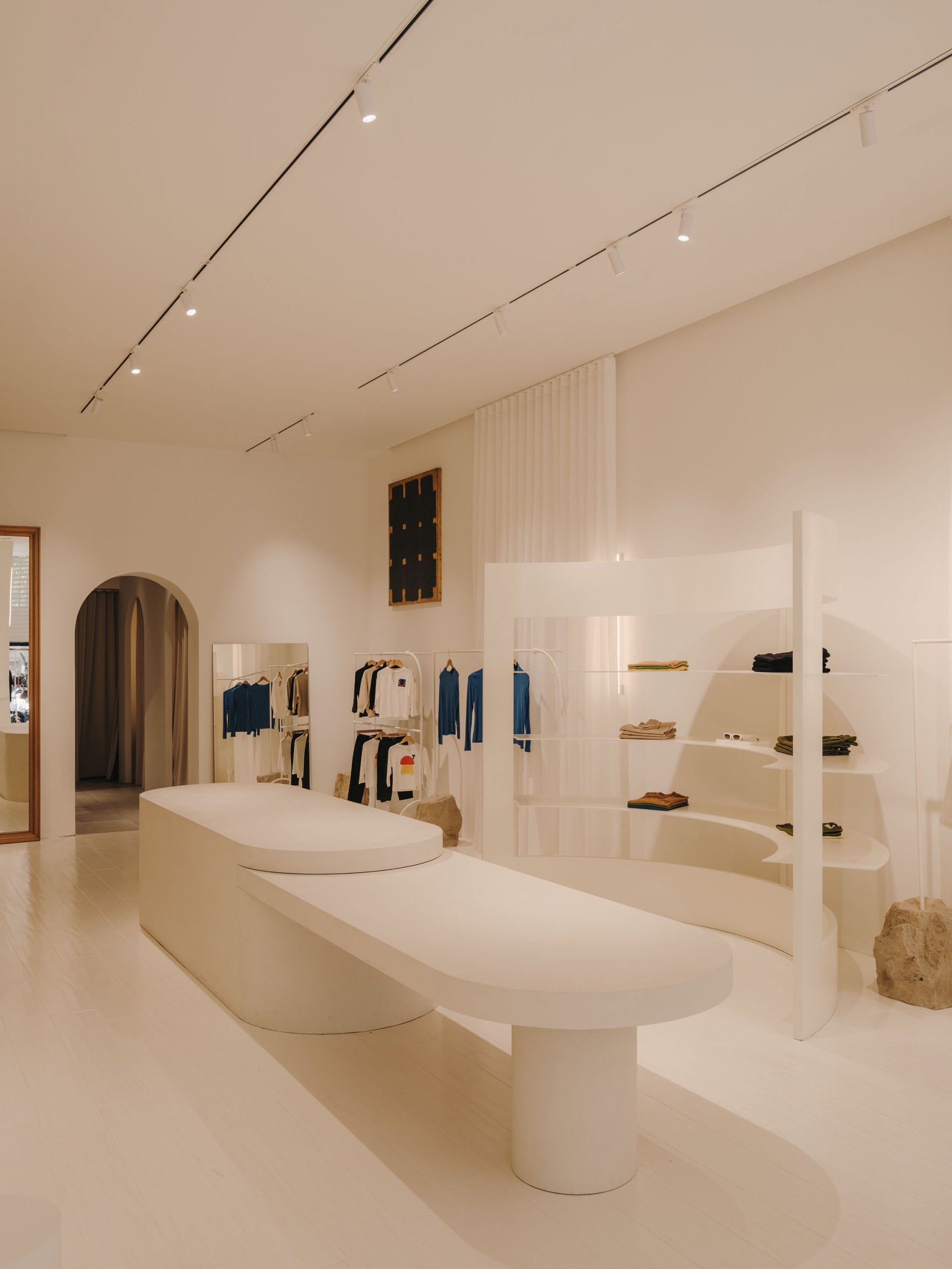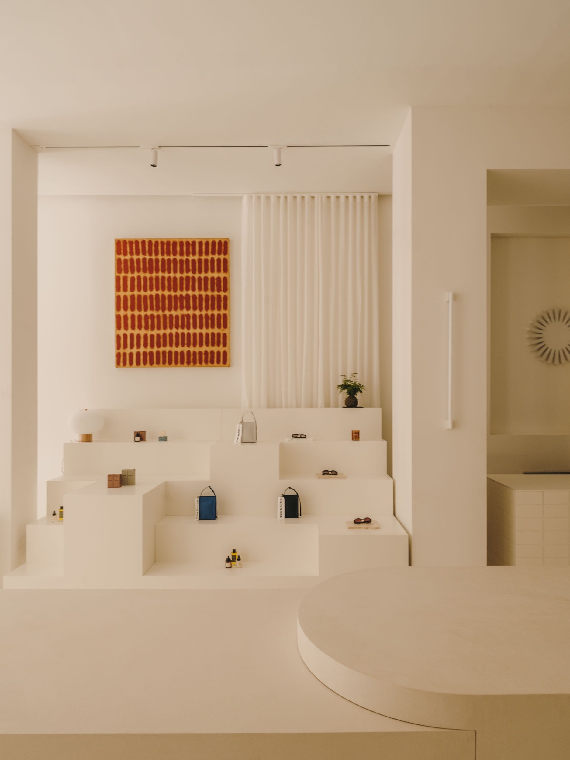 Une évolution qui se reflète également à l'intérieur de l'espace que la marque a confié à Isern Serra, l'un des architectes les plus en vue de la ville de Barcelone, qui a conçu un ensemble d'éléments mettant en avant le lien de Thinking Mu avec la Méditerranée, l'intemporalité et la nature. Des blocs de terre compactée, des matériaux créés à partir de déchets de papier et des peintures à base d'argile, de minéraux et de pigments naturels sont les protagonistes de cette oasis au cœur de la ville. La touche finale est apportée par une exposition exclusive du peintre argentin Alejo Palacios qui, pour la première fois, transfère ses œuvres de la toile au bois et les expose dans le pop up, complétant ainsi le projet.