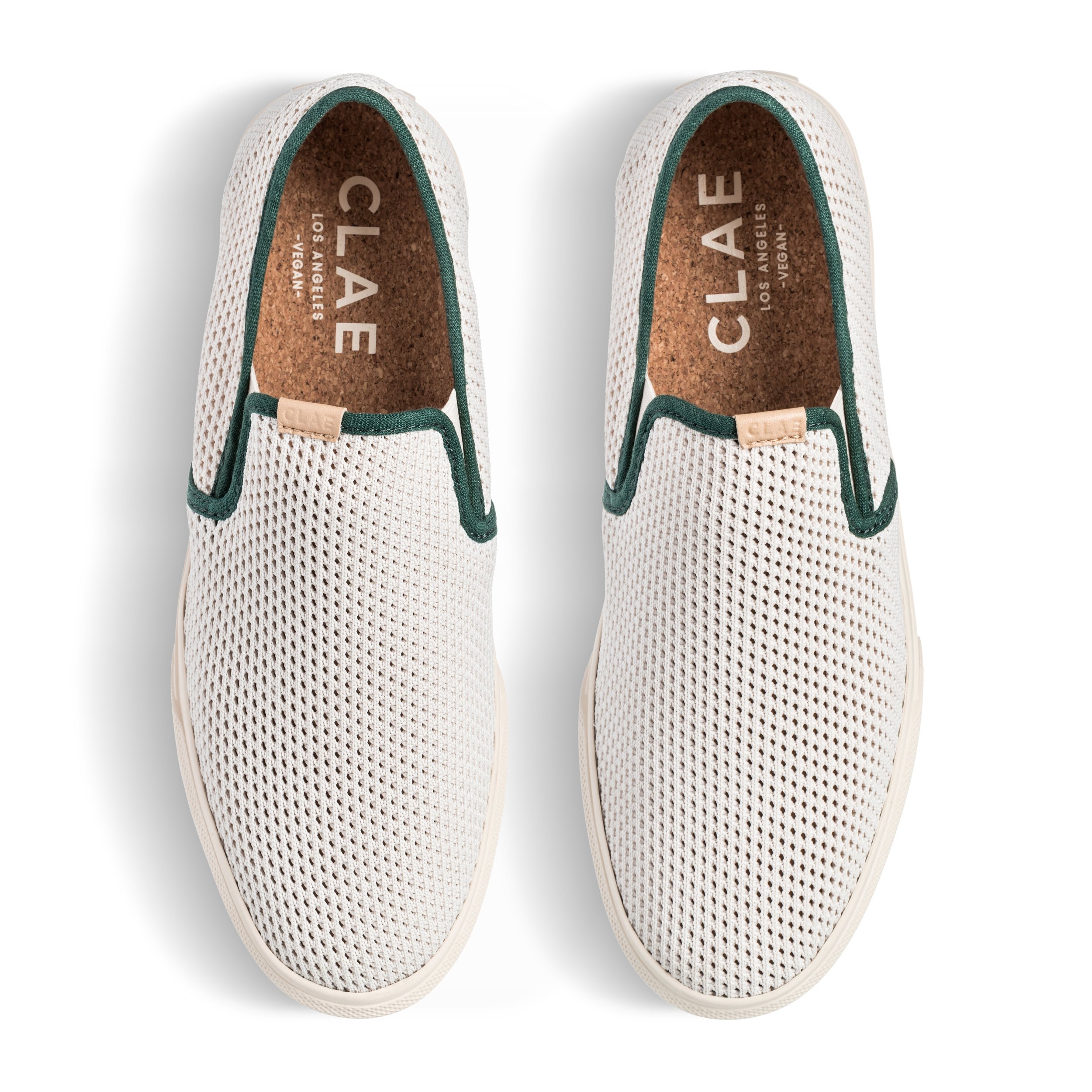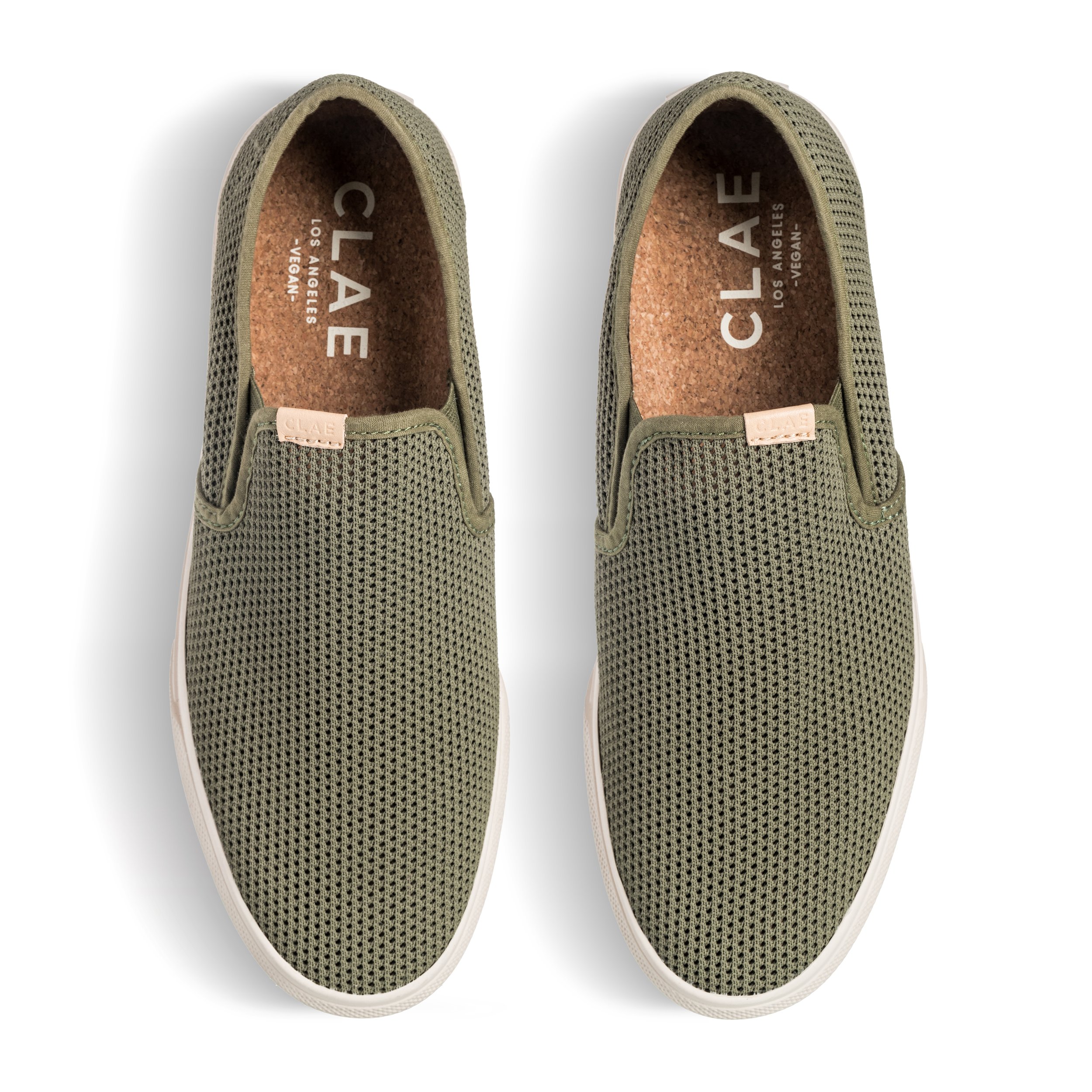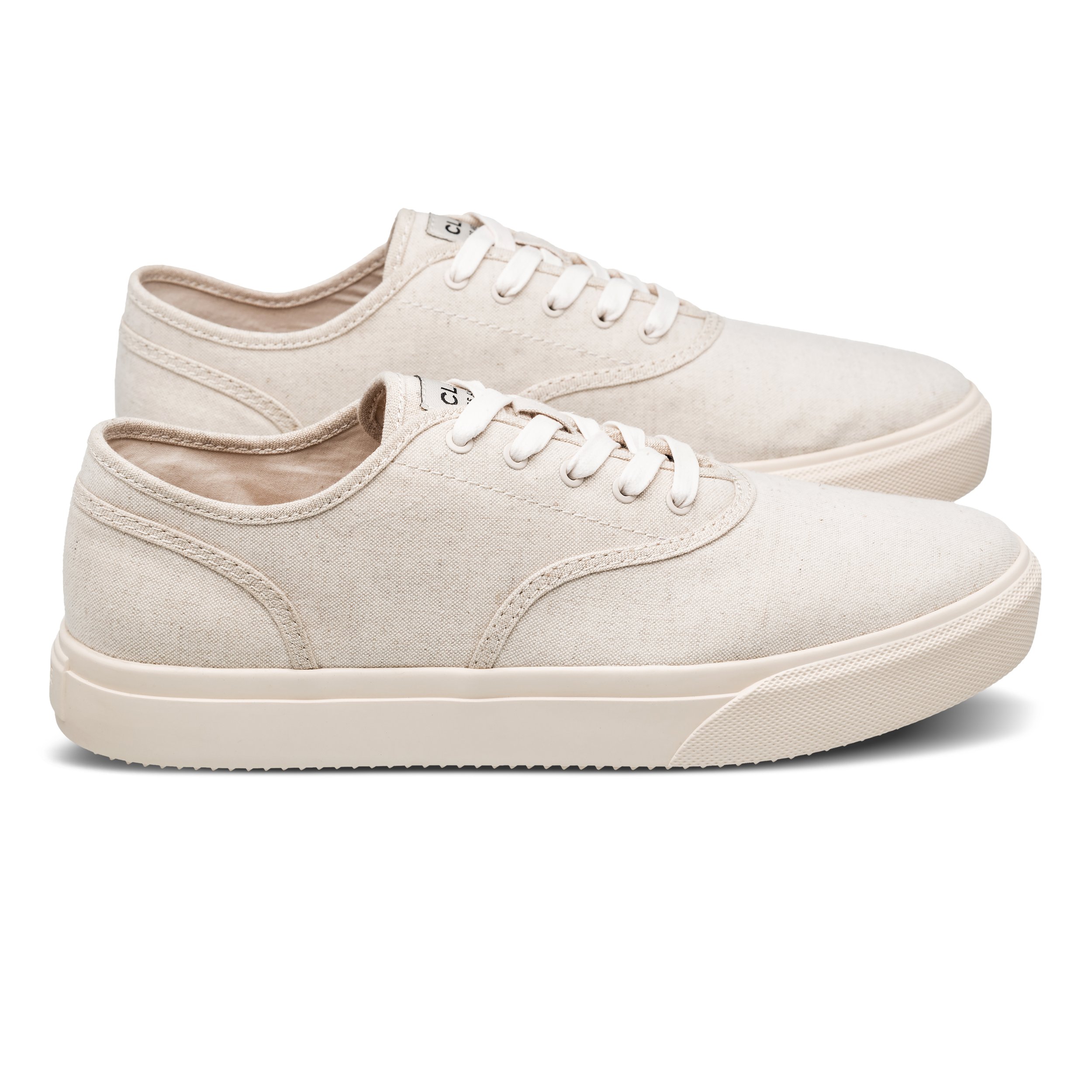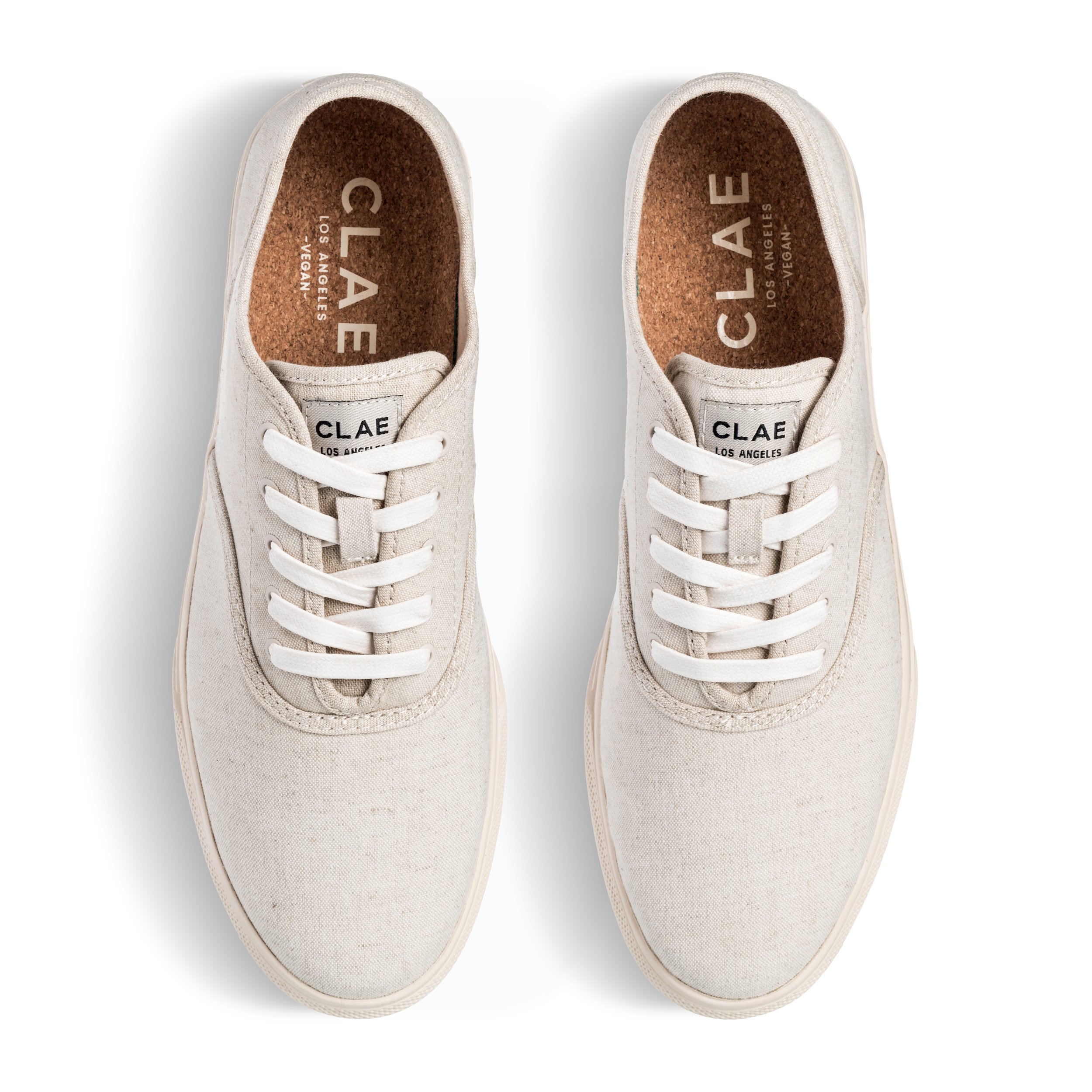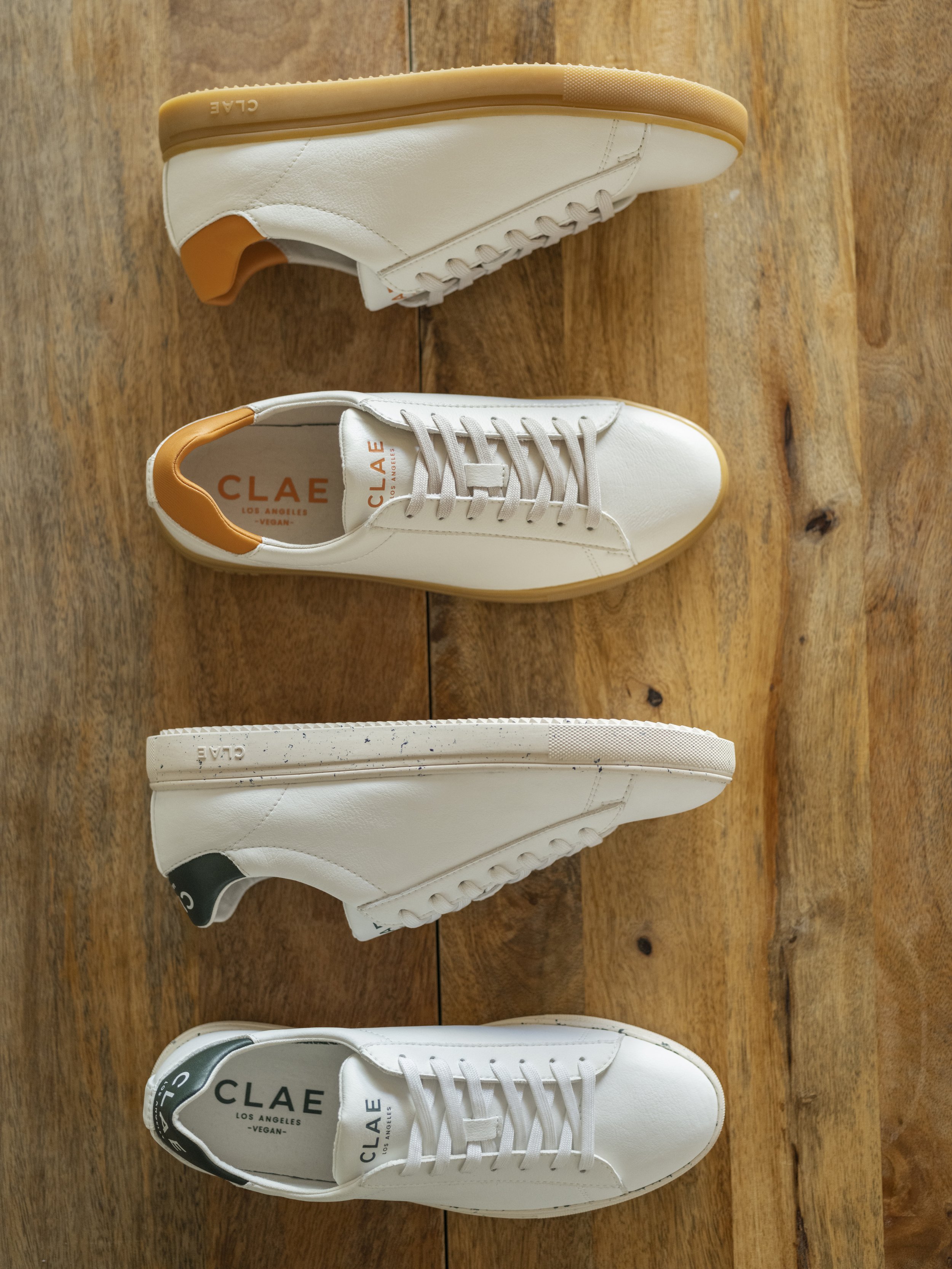 Clae a repensé chaque élément de sa collection Vegan. Aux tiges Vegan d'origine recyclée ou organique (chanvre, coton GOTS, cactus), elle a ajouté : des lacets en nylon recyclé ou en coton biologique, une doublure en polyester recyclé ou en coton biologique, des semelles intérieures en mousse PU 100% recyclée et une semelle extérieure composée à 30% de caoutchouc naturel.