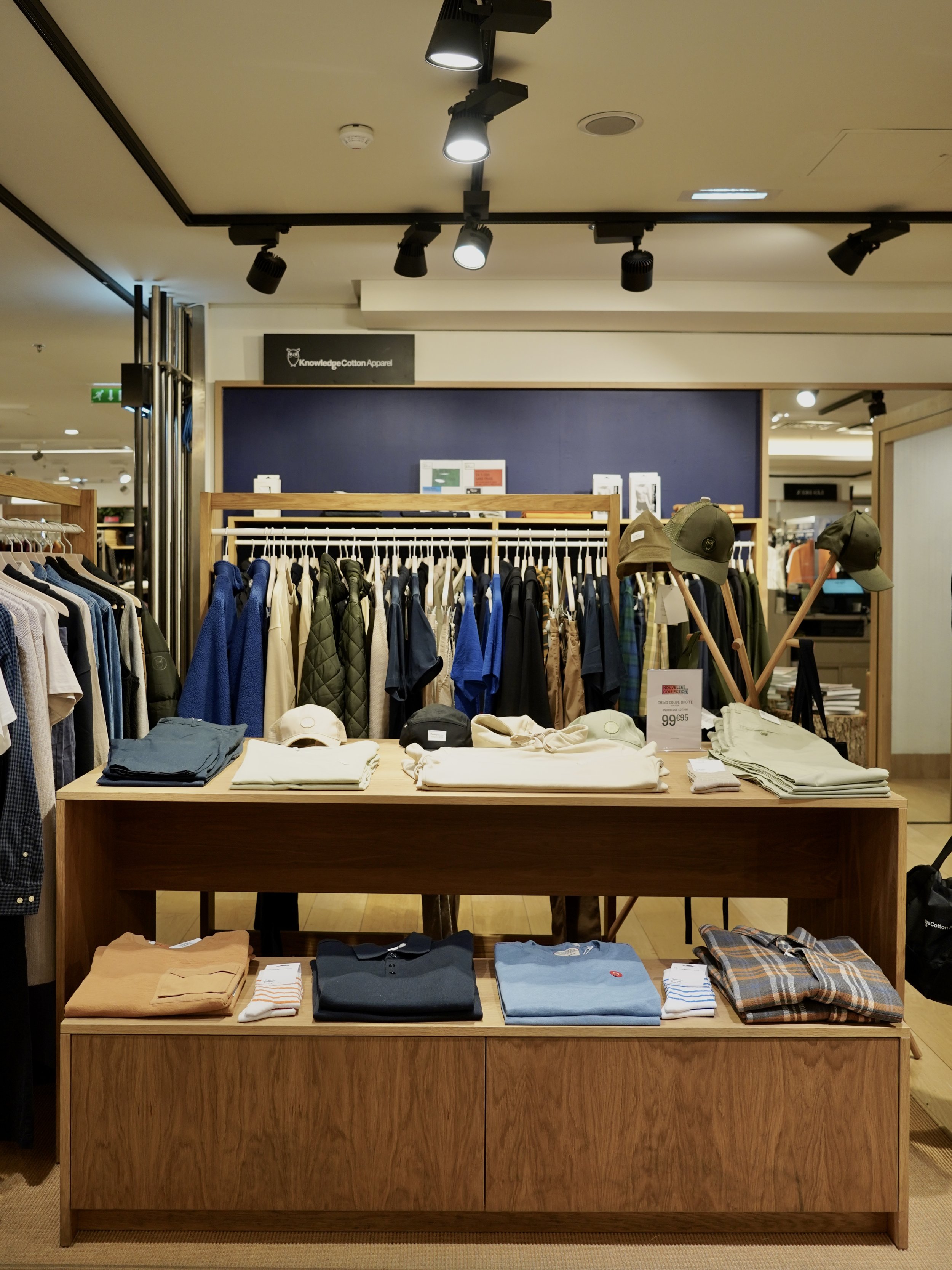 Depuis l’automne dernier, vous pouvez retrouver un corner homme KnowledgeCotton Apparel au Galeries Lafayette Paris Haussmann, corner orchestré par The Clothette Retail Management.