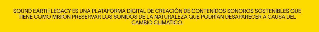 Imaginée par une équipe pluridisciplinaire issue de l'industrie musicale, de la coopération internationale, du cinéma et de la communication, la mission de SEL est d'atténuer le changement climatique en donnant une voix aux projets scientifiques par le biais du son et de la musique. Son travail consiste également à lancer des appels à l'action pour préserver les sons de la terre, sa biodiversité et ses écosystèmes par l'éducation, les activités culturelles et les spectacles immersifs. Basées à Barcelone, les équipes de SEL parcourent la planète en racontant des histoires sonores et musicales puissantes qui font passer les gens de l'apathie à l'action.