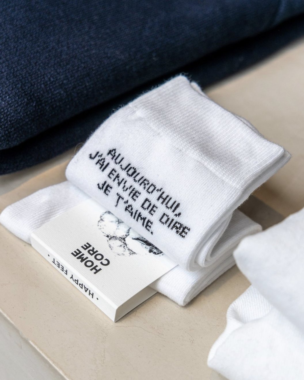 Enfin, la confection des vêtements révèle des messages d’amour et de bonnes vibrations au dos des étiquettes ou à l’intérieur des vêtements, comme « Aujourd’hui, je veux vous dire que je vous aime » ou « Homecore here now » « Happy human here » « Respirez profondément, pensez positif », etc…