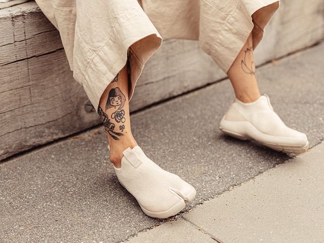 Avec Tabi, Eik mixe ses passions personnelles et ses expériences professionnelles pour un produit raffiné basé sur l'amplification innée, c'est-à-dire le renforcement des capacités physiques innées. Le fait de pouvoir sentir le sol sous ses pieds et de laisser le pied libre de ses mouvements contribue à créer une sorte d'enracinement particulier - non seulement physiquement, mais aussi mentalement.