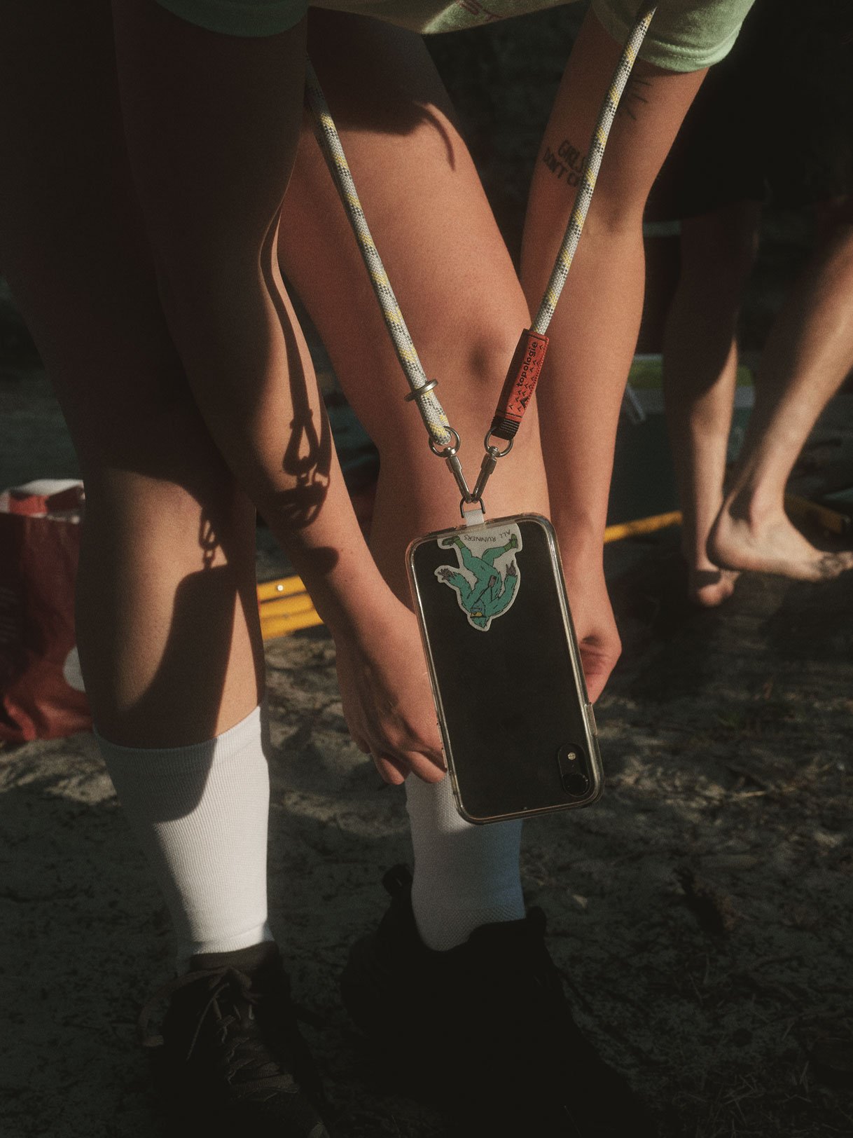 Le cordon de 8.0mm teinté de gris avec des touches de fils jaune et réfléchissants et le Phone Strap Adapter Yéti.
