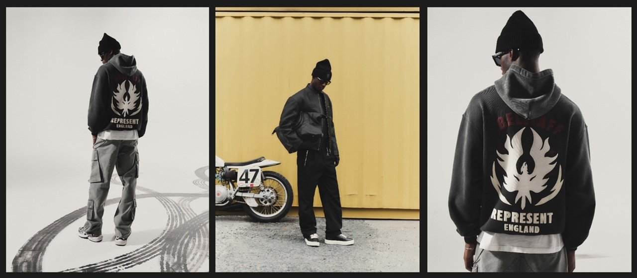 Réunissant Belstaff et Represent deux marques britanniques pionnières aux racines mancuniennes (de Manchester), cette collaboration inédite est un regard streetwear sur l’héritage motocycliste Belstaff fort de 100 ans, apportant la liberté de la conduite au quotidien.