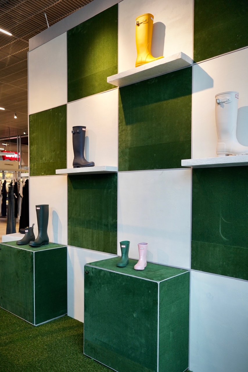 Prévu pour durer jusqu’en Janvier 2025, ce corner Hunter, tout en vert et blanc présente une déclinaison exclusive jaune Samaritaine des bottes mythiques. Le must-have de l’hiver quelque soit la météo !