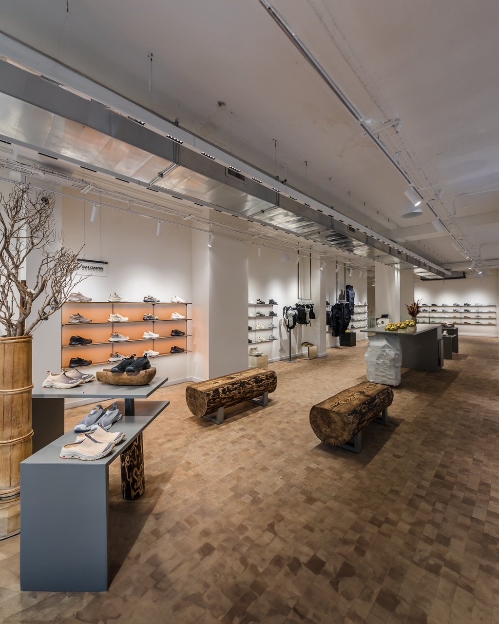 Le magasin sera le premier du nouveau concept de vente au détail mondial de Salomon, avec une touche spéciale pour Le Marais. Le sol en bois "pavé de Paris", typique de nombreuses rues parisiennes, ancrera le magasin au cœur de la capitale française. D'autres éléments authentiques provenant des montagnes près d'Annecy, tels que des bancs en bois, des meubles anciens provenant de vieilles fermes et de la végétation, imprègnent le magasin de l'esprit des Alpes.