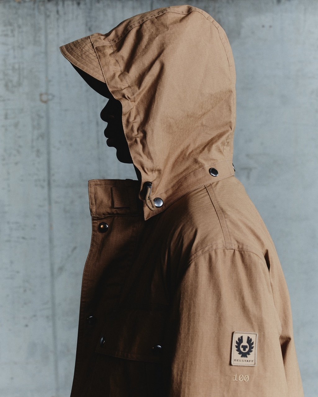 Dans le prolongement de la première capsule du centenaire, BELSTAFF se concentre sur des matières et des silhouettes fortes. Le shearling et le coton ciré occupent une place centrale, notamment grâce à une cire exclusive, la "Hex Wax", qui confère technicité et durabilité à leur tissu emblématique. Le shearling est également ciré à la main, ce qui permet d'aller plus loin dans le traitement de héritage iconique de la marque.