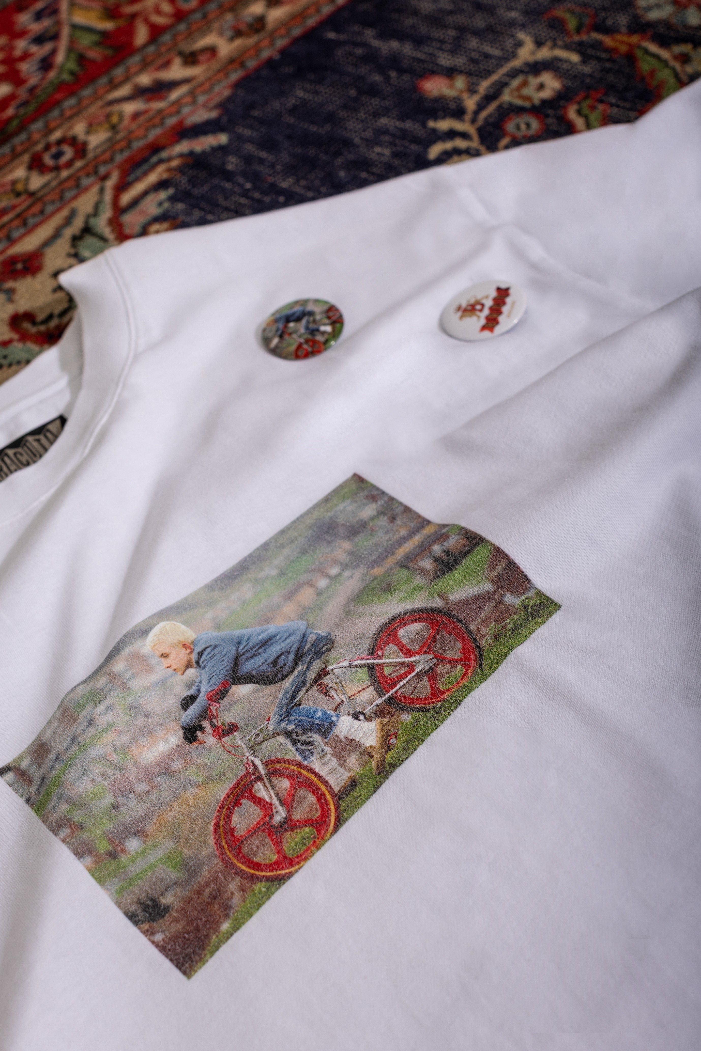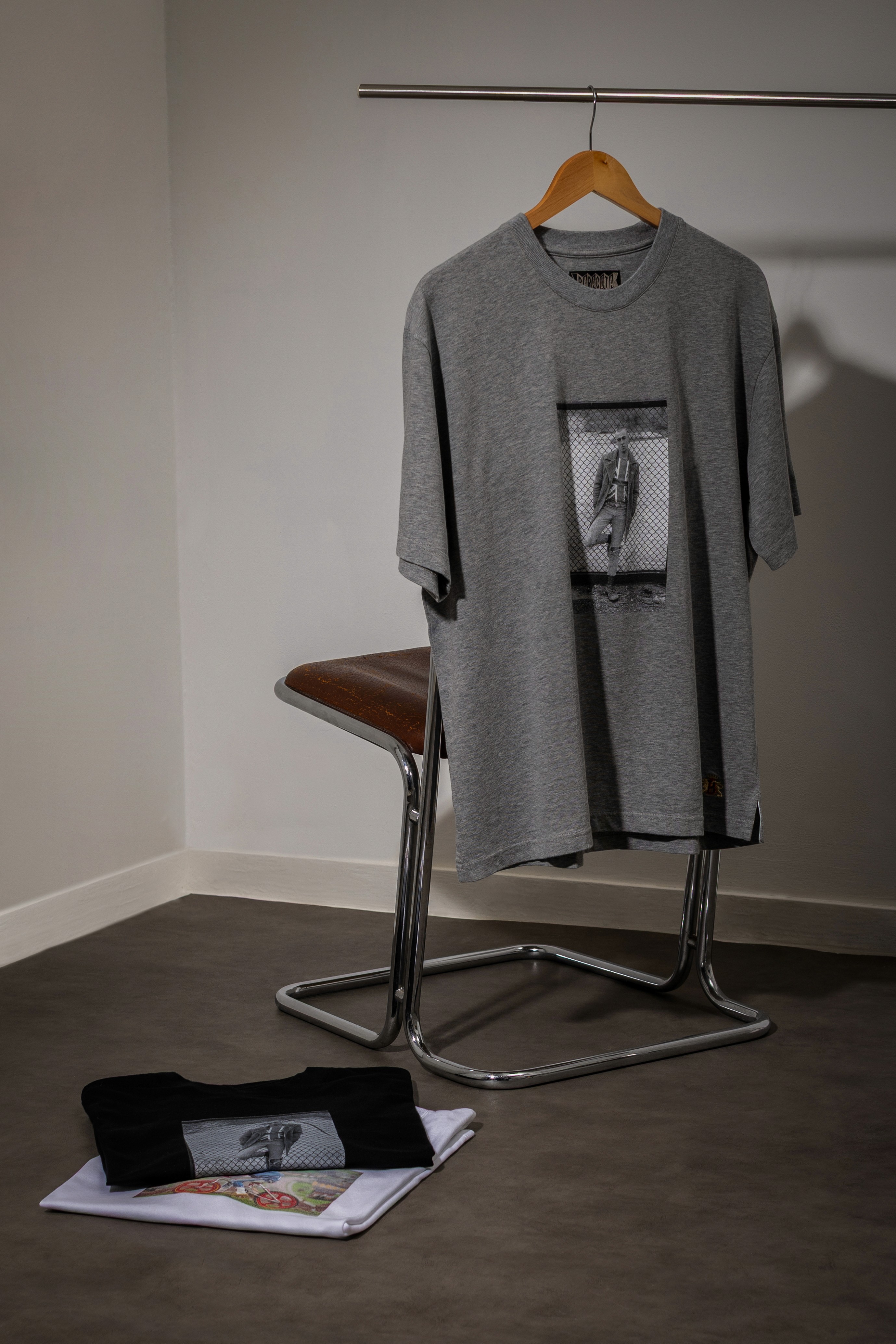 L'Extension du Vestiaire : La collection est complétée par deux t-shirts graphiques qui empruntent à l'univers du photographe et un set de quatre pin's à collectionner, clin d'oeil aux sous-cultures british.