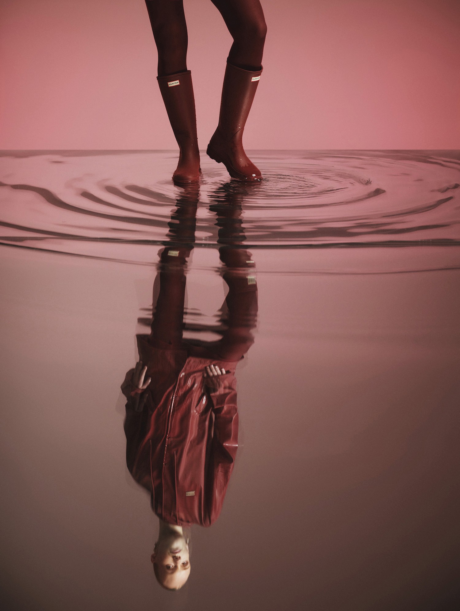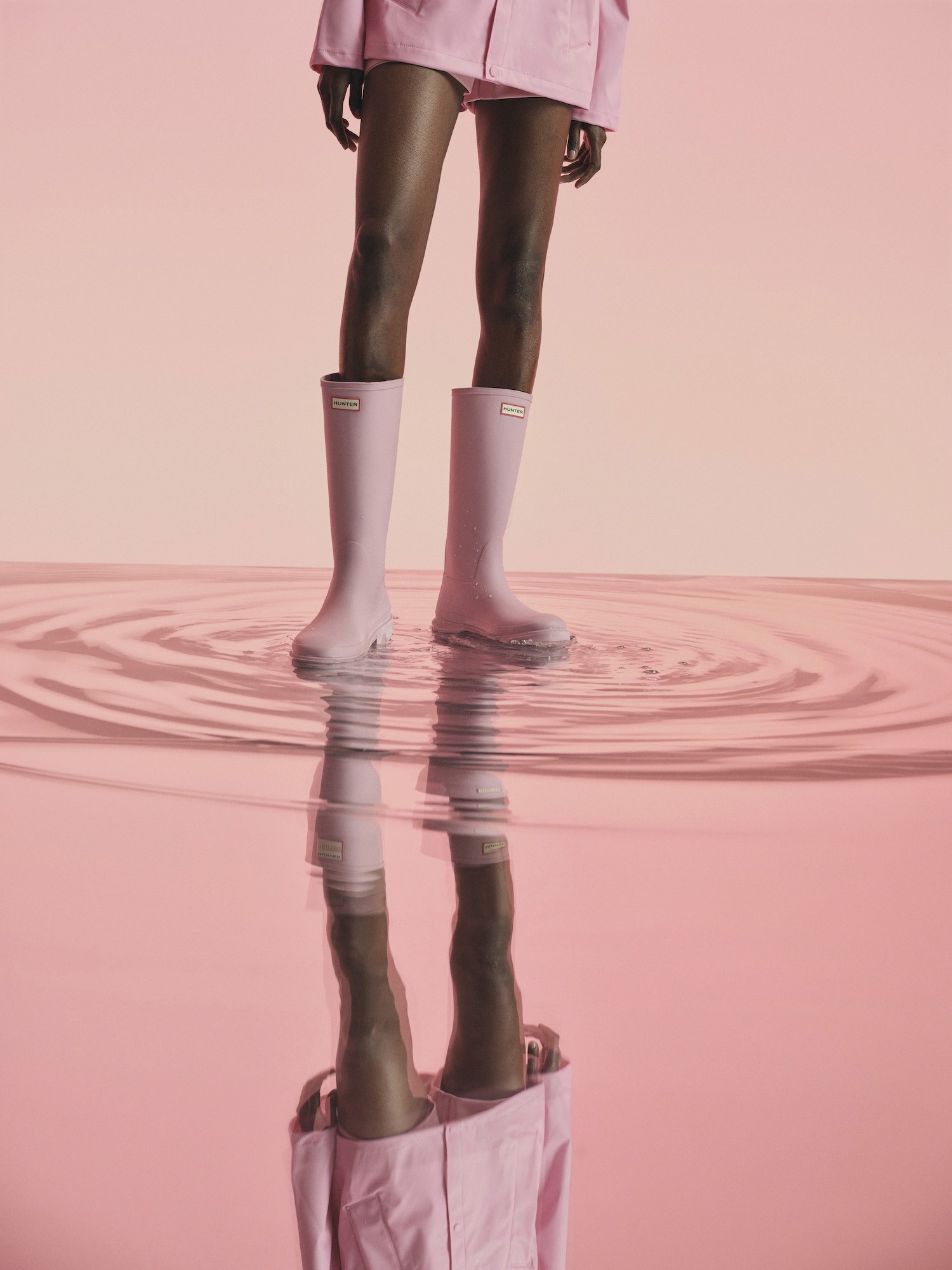 Un Levier de Cohérence de Vestiaire : La botte Hunter ne vit pas seule. Elle structure un récit produit en s'associant naturellement à de l'outerwear, de la maille robuste et des accessoires fonctionnels. La collection Hunter a d'ailleurs été pensée en ce sens : les vêtements de pluie, des imperméables classiques aux nouvelles vestes en coton huilé ou matelassées, partagent les mêmes coloris et détails que les bottes, créant une silhouette complète et cohérente.